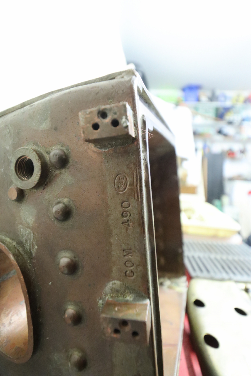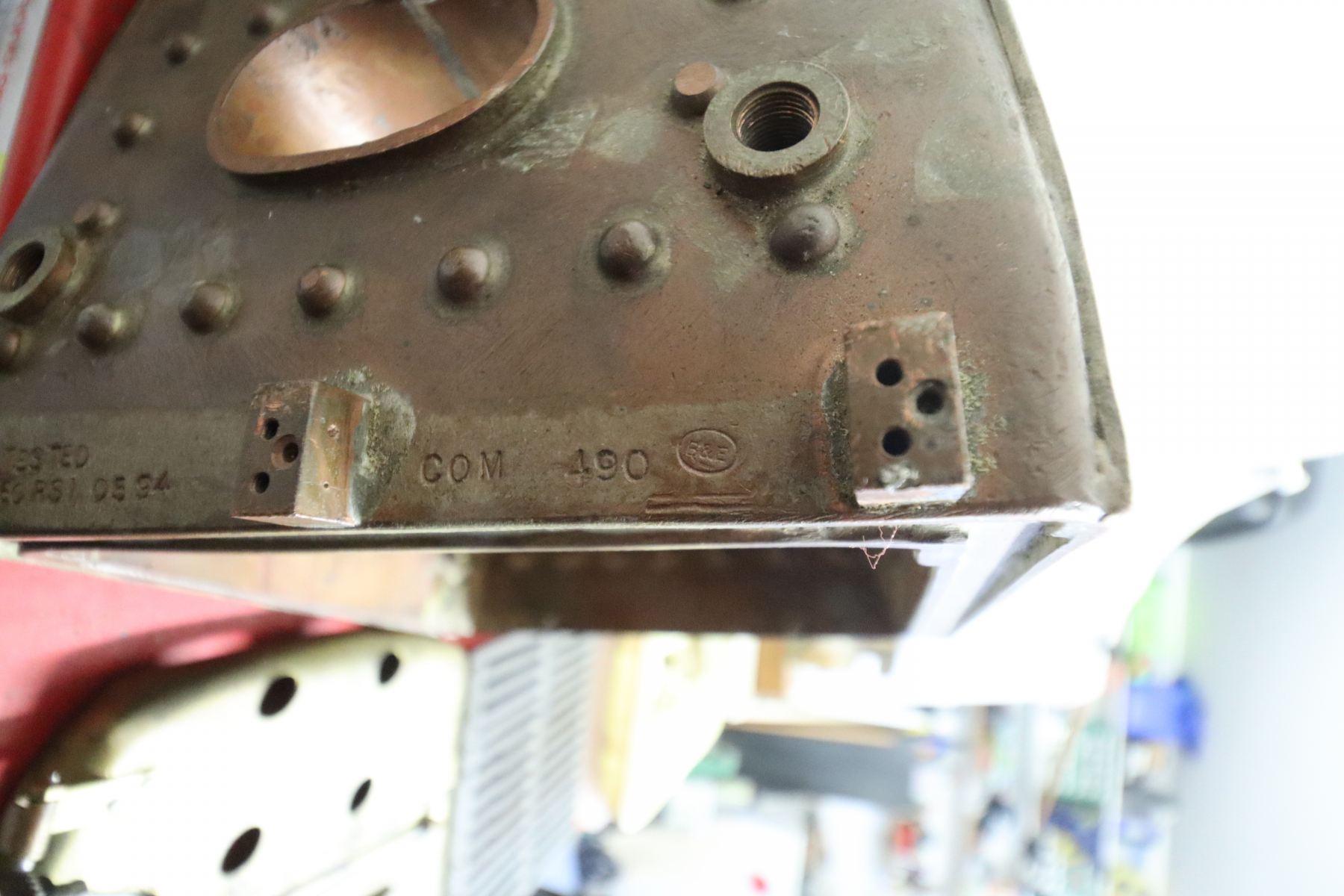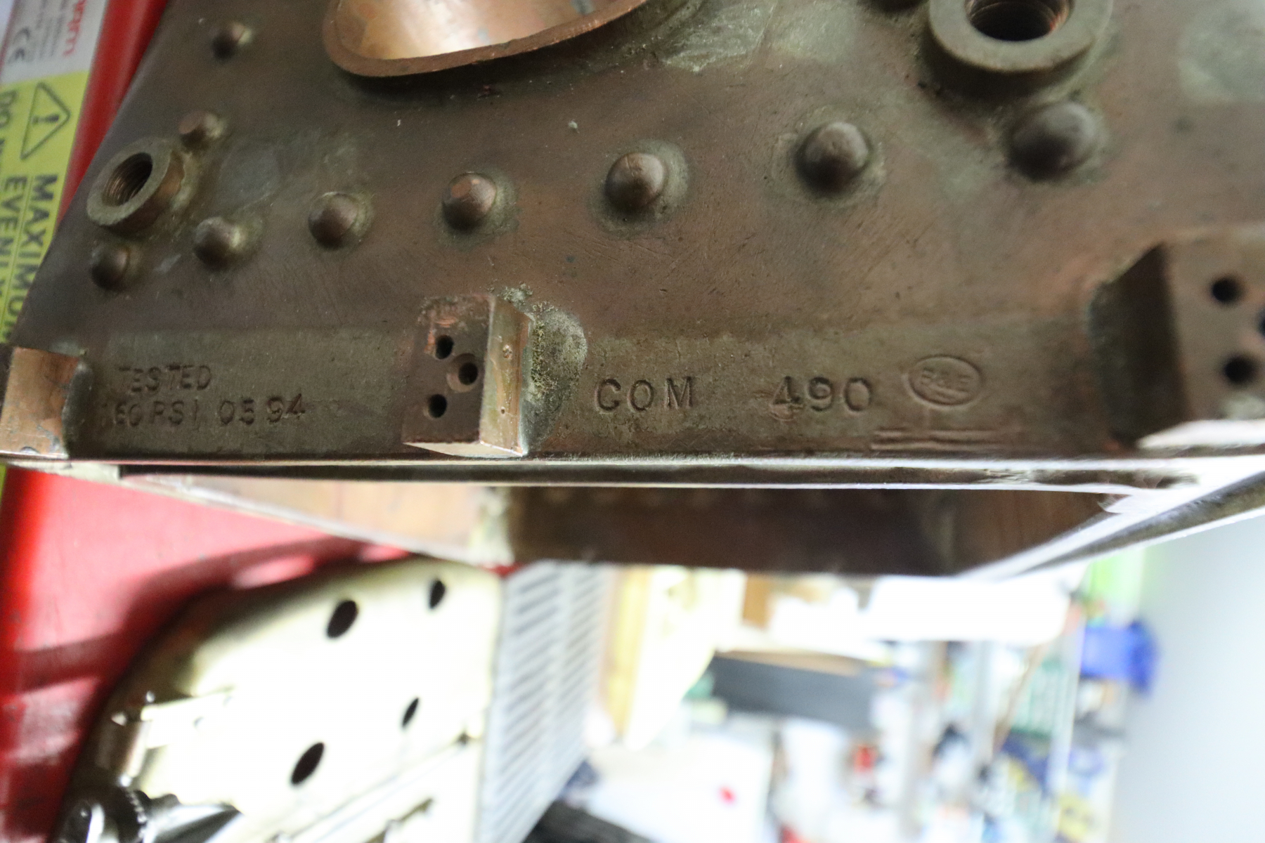 • back head also stamped with the identity “COM490” plus an oval shaped stamp containing the letters “B&E” – only google reference I can find indicates this might have been a Bishop Ellis boiler, or a boiler previously provided for a Winson kit. If you know what this mark indicates, please do let me know!