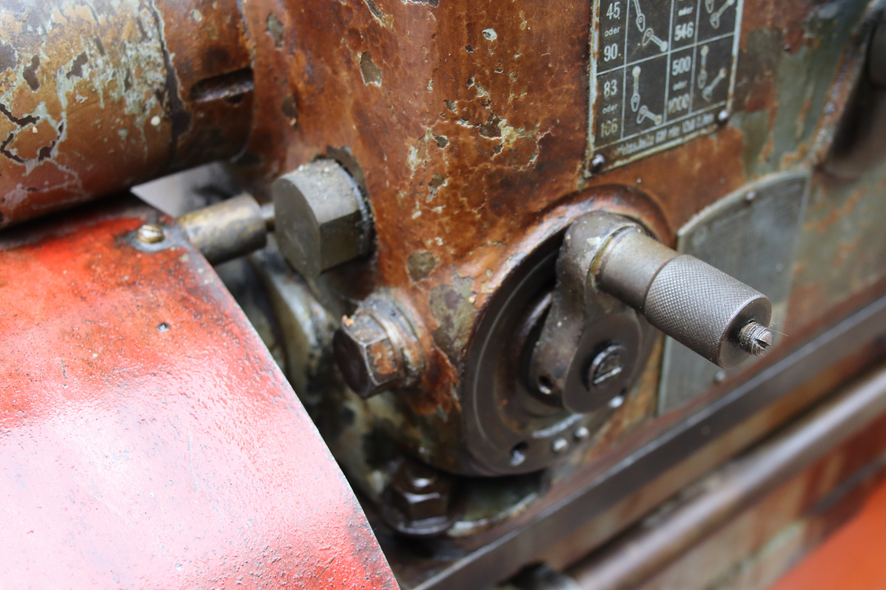 This is an ex-German Navy lathe made by Union Werk AG which was recovered from one of the warships moored up in Londonderry after the end of World War II. Further information about this lathe can be found on the excellent lathes.co.uk website here.