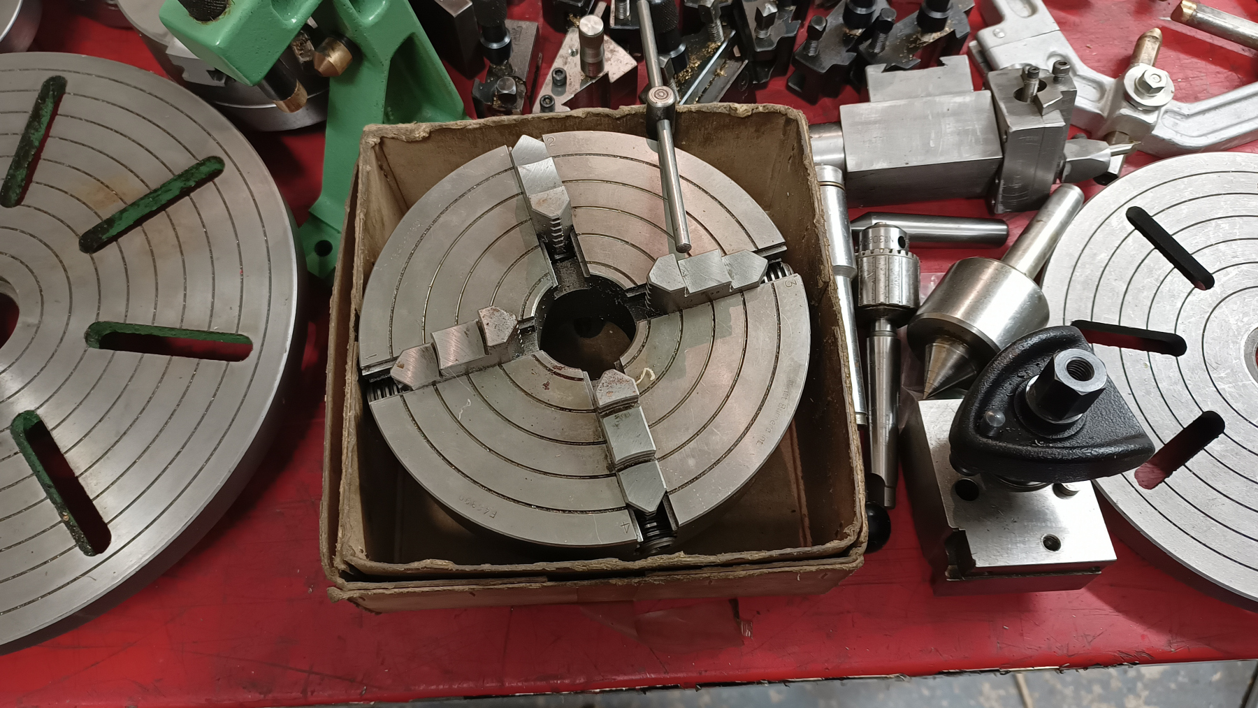 - 4″ 3 jaw Burnerd self centreing chuck with threaded mount