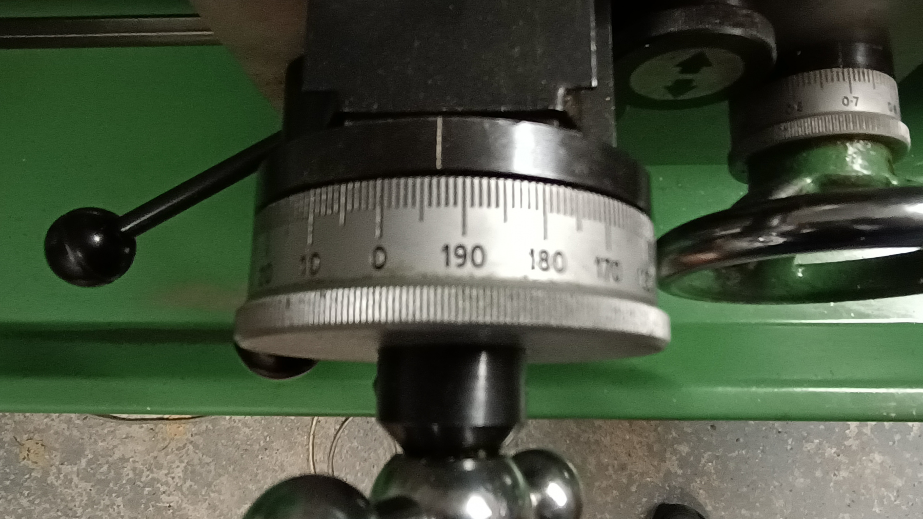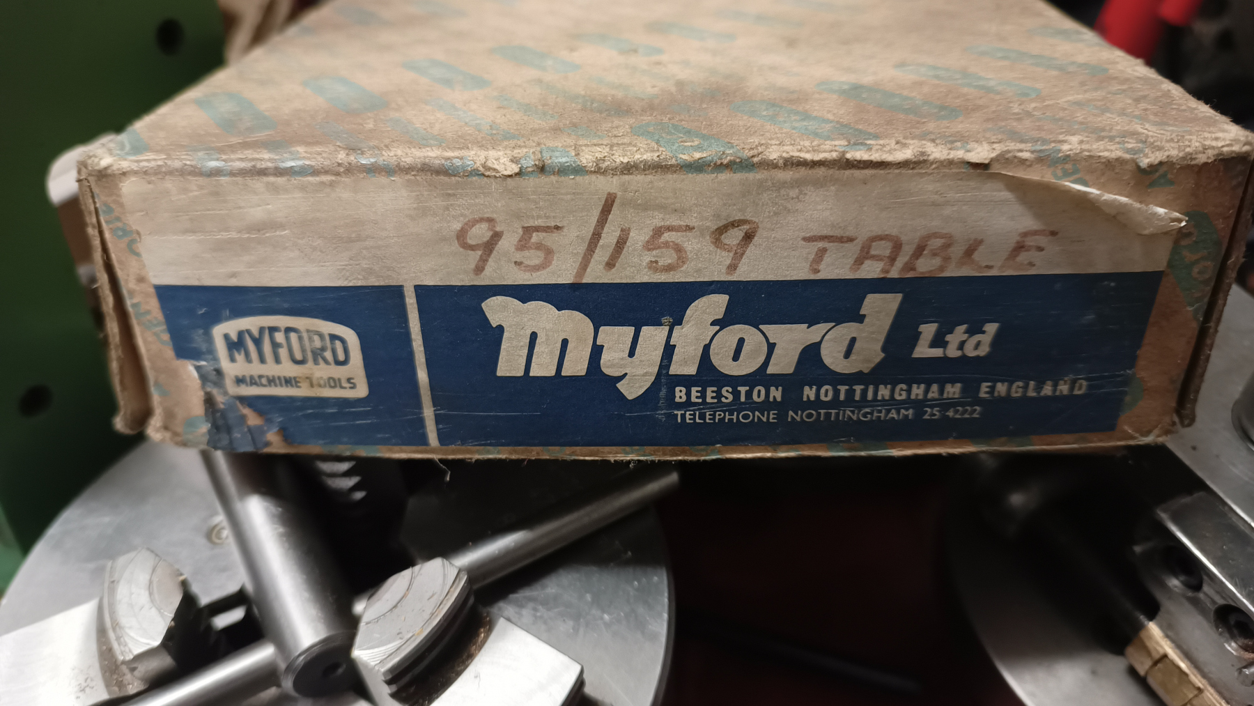 There is also a milling / drilling attachment fitted to the rear of the bed, serial number RO213. There is an ER25 (??) collet holder + draw bar in the spindle, alternatively I believe Myford 2MT collets can be held directly in the spindle using the collet nose piece.