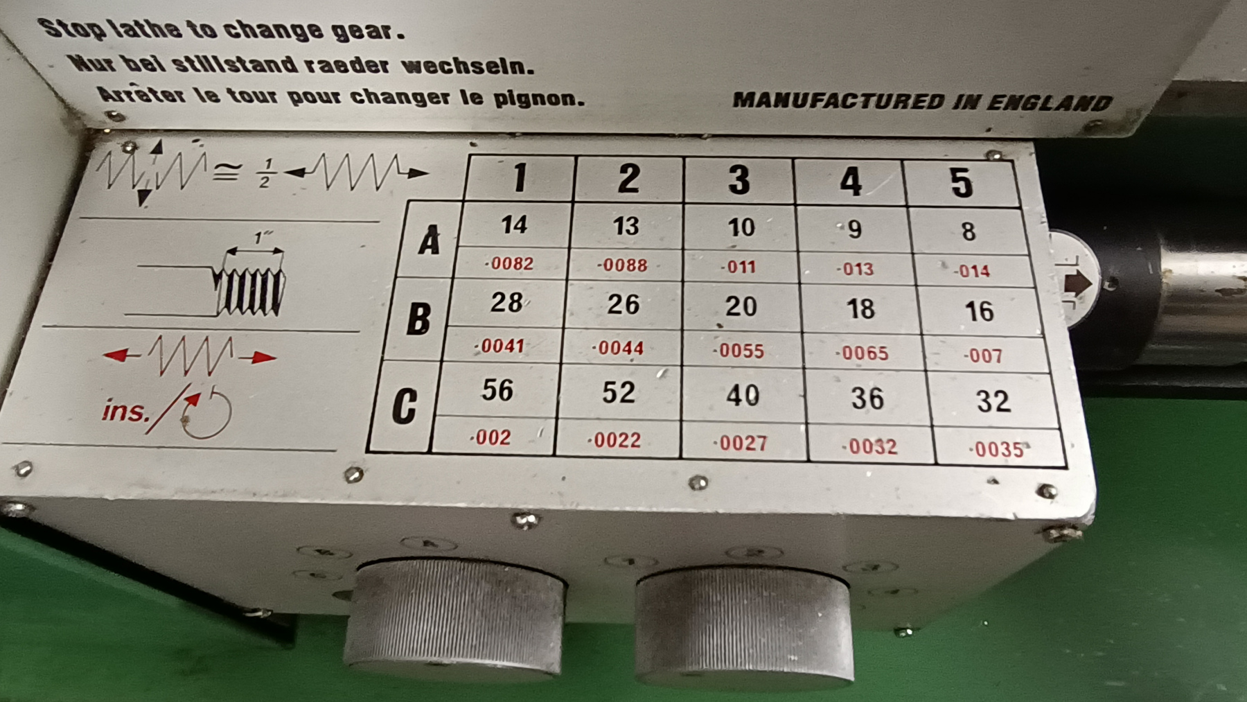 It has induction hardened bedways, and gearbox is imperial, although of course metric thread pitches can be acheived using extra gears as explained in the operating manual. There is a thread dial indicator fitted to assist with cutting threads, and there is a geared & retracting top slide which is also extremely useful when cutting threads.