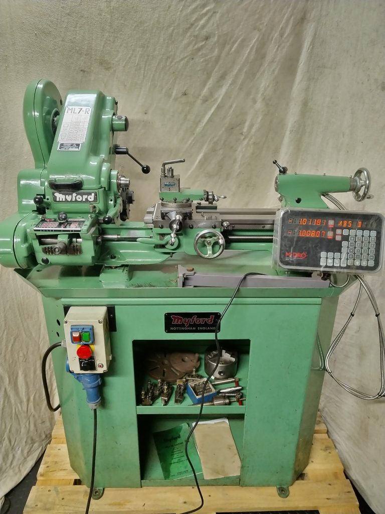 The micrometer dials to the cross slide and top slide are metric as designated by the ‘M’ suffix to the serial number. The machine is fitted with two axis digital read out by Machine DRO, meaning that both imperial and metric measurements to the travel of the carriage and cross slide can be taken with the ease of just reading numbers off the display unit screen which is so much easier (and accurate) than reading the micrometer dials!