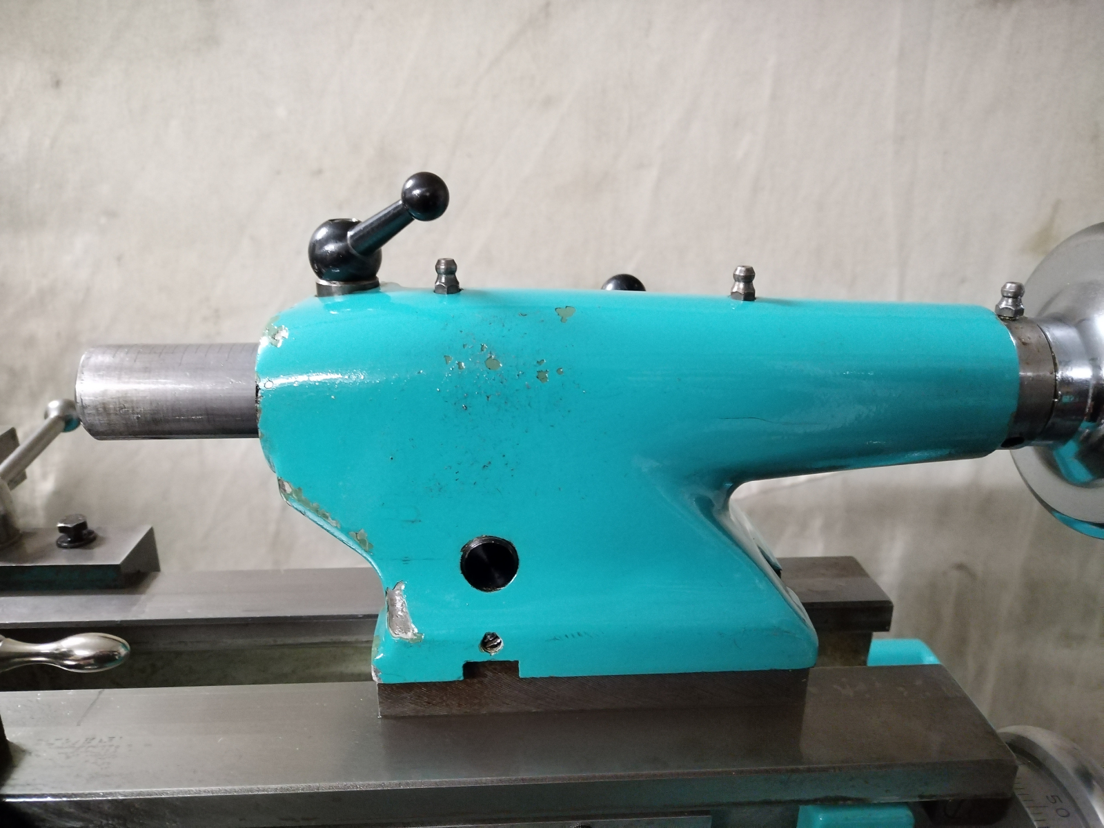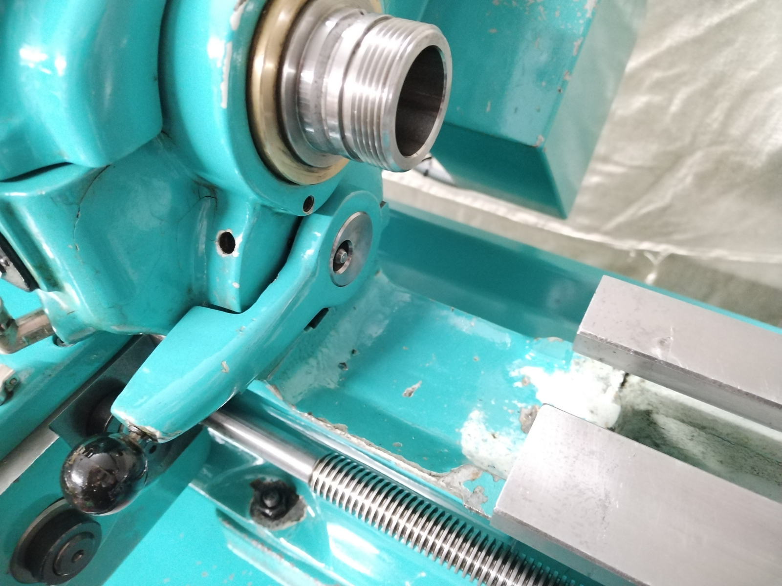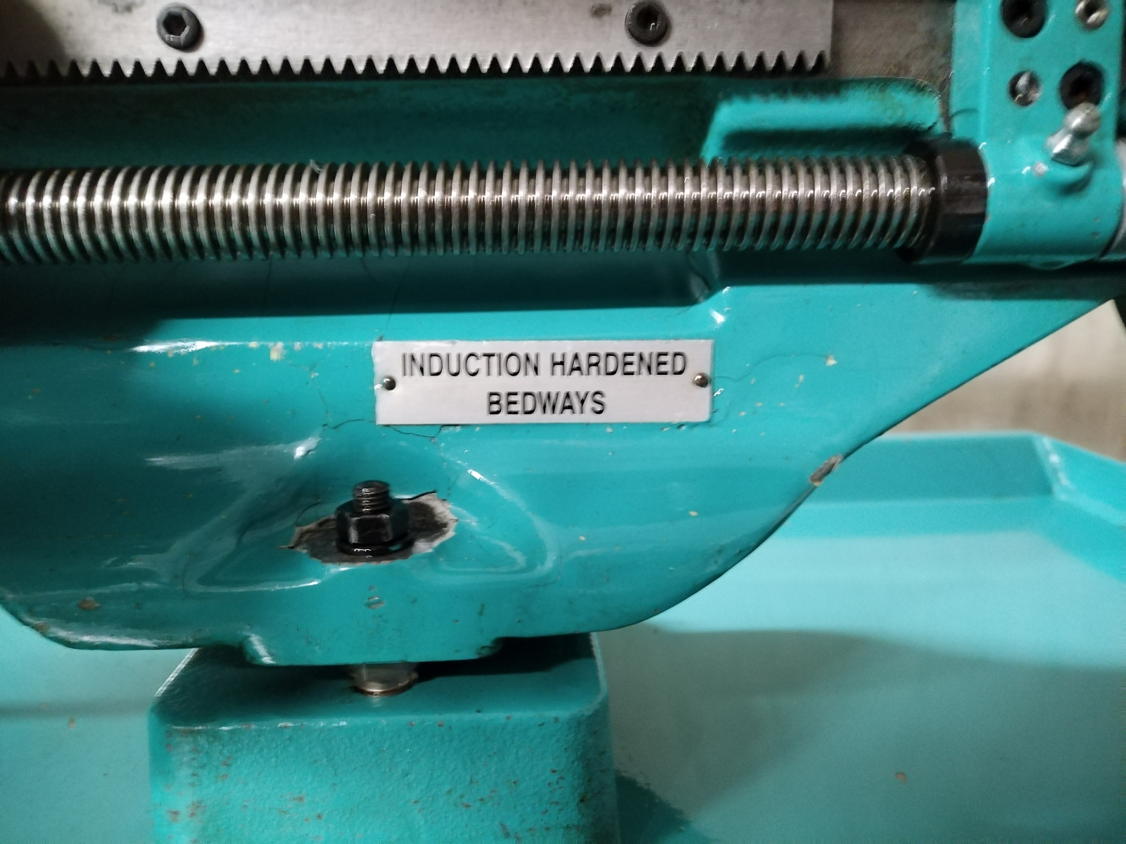 Please review the photos and watch the video to assess the condition of this lathe. Note that there are a couple of dinks to the bed as a result of the former owner lacking the strength needed to remove the chuck, please ensure you check the relevant photos showing these dinks. One of the dinks is on the surface of the rear half of the bed, the other is on the front edge of the bed. There are some areas of cracking to the lathe paintwork and some paint on the tray has chipped off.
