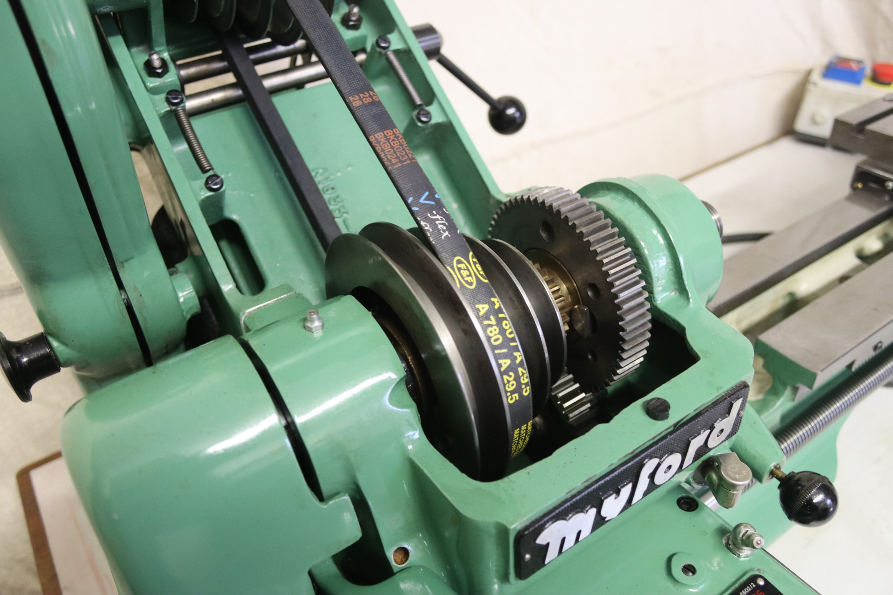 It has brand new vee belts on the primary drive motor to countershaft and secondary drive countershaft to headstock, plus a new wiper felt.