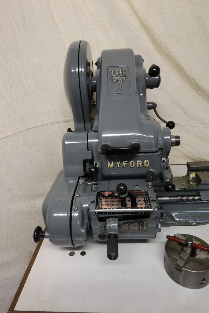 Myford Super 7 lathe SK77428 with quick change gearbox and Newton Tesla variable speed controller