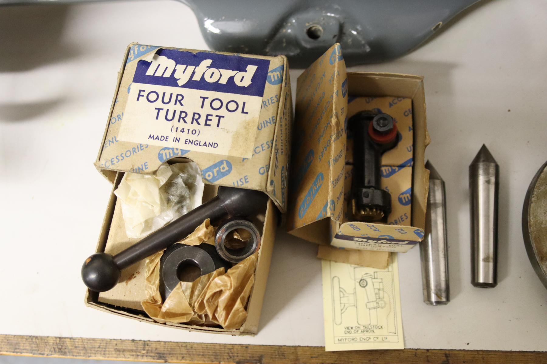It also comes with an unused Myford lathe stand, short arm Dewhurst switch, tray & riser blocks, plus the following original accessories …..