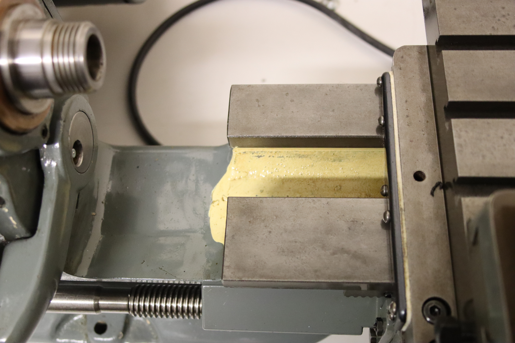 The lathe has been prepared for use by cleaning protective oil layers, fitting new vee belts on the primary drive to countershaft and secondary drive countershaft to headstock, plus a new wiper felt and spindle wick have been fitted and all the oil nipples have been replaced. In particular, the bed has simply been wiped with a white spirit impregnated cloth to remove the oil layer from the areas other than where the carriage had sat, as can been seen in the photos.