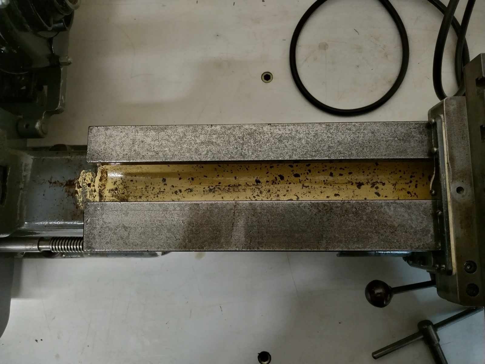 The condition of the bed is good with consistency of travel of the carriage along the full length of the bed. The condition of the lead screw half nuts is also good, as can be seen in the final photo.