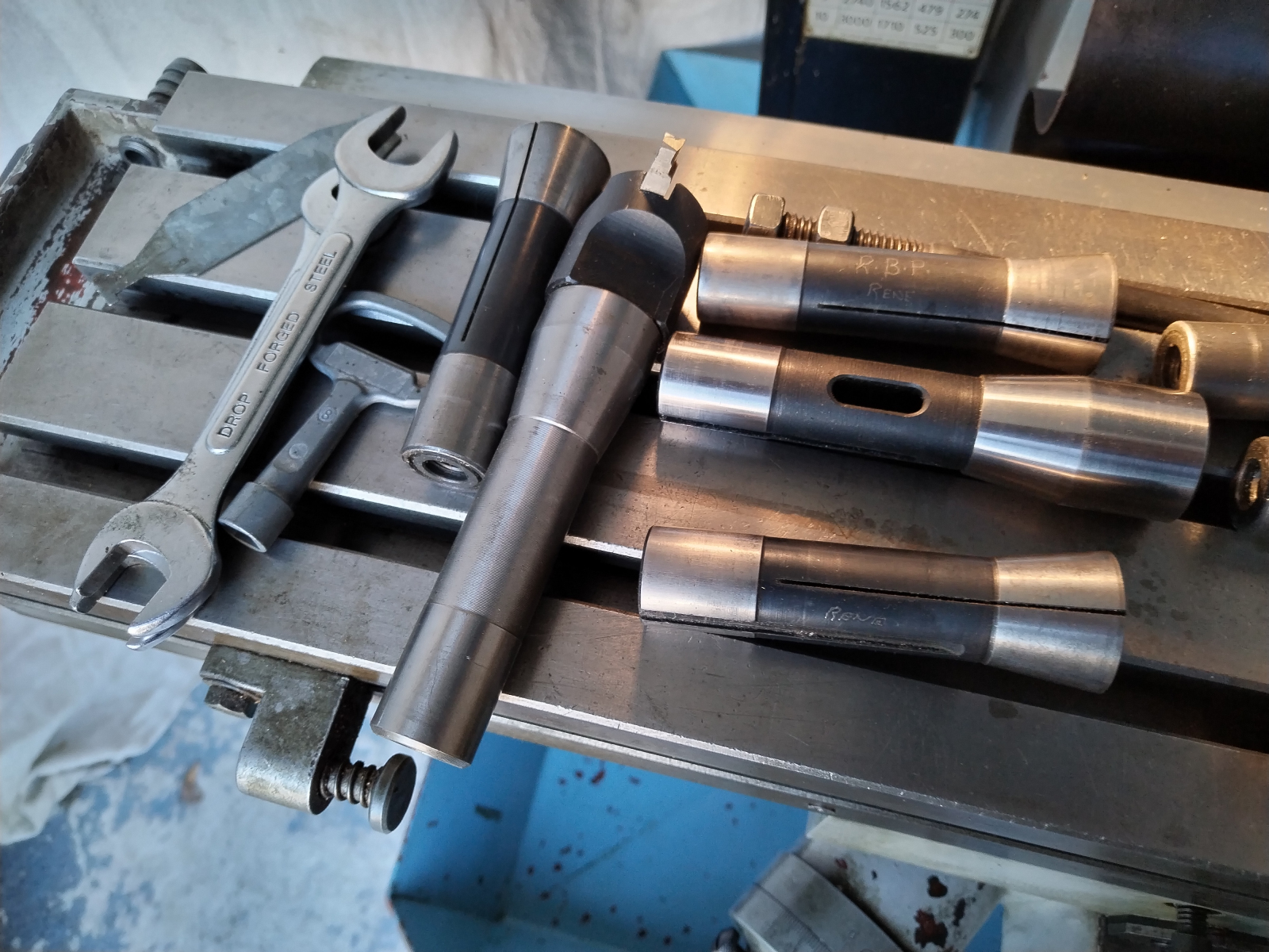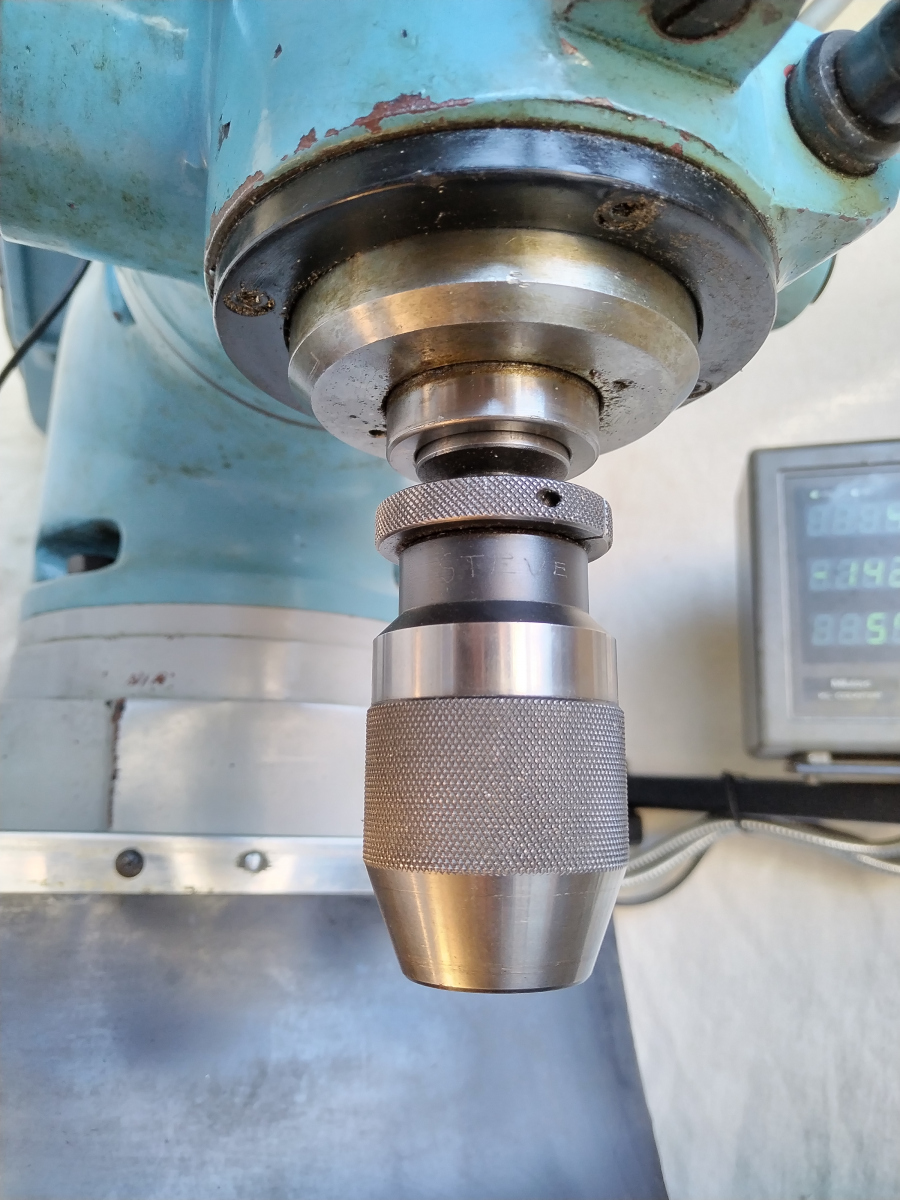 The spindle accepts R8 tooling and there is a keyless chuck, various collets and tool holders included.