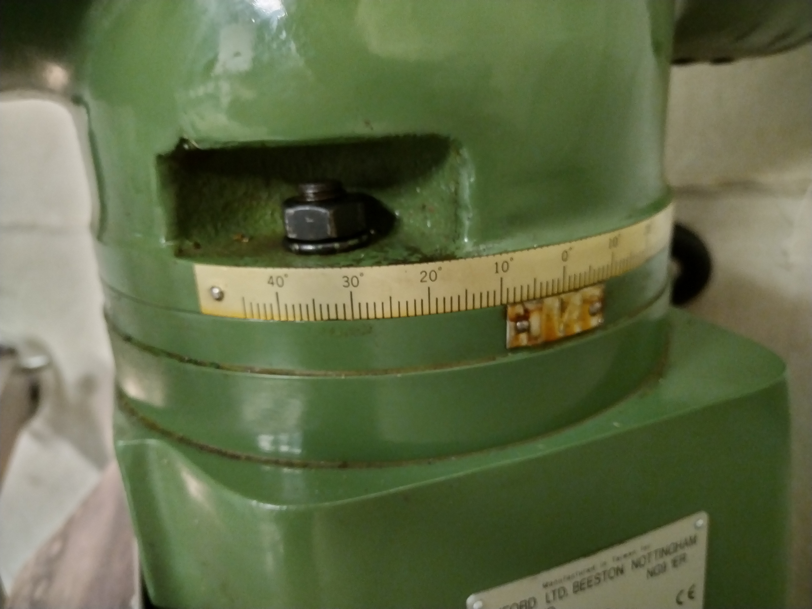 According to the brochure, the working surface of the table size 30″ x 7 1/8″. The table is fitted with a power feed drive unit, with 6 speeds of operation available.