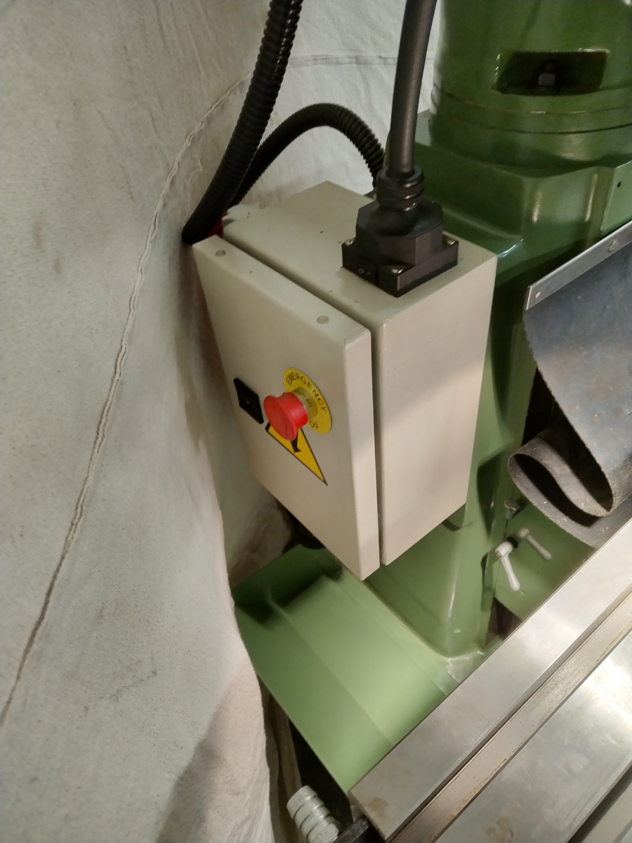 It is powered from a standard single phase 240V supply, with a Myford supplied Transwave unit providing the 3 phase supply needed for the machine.